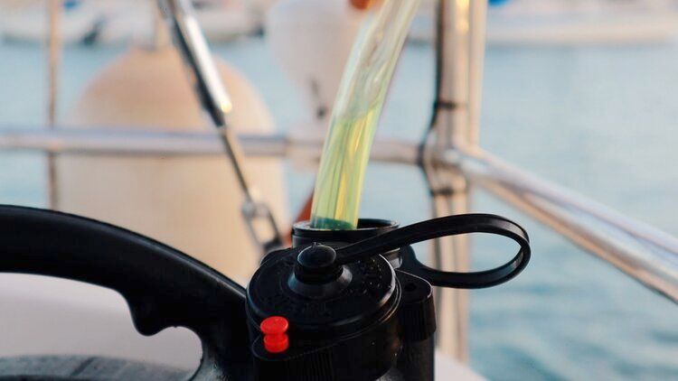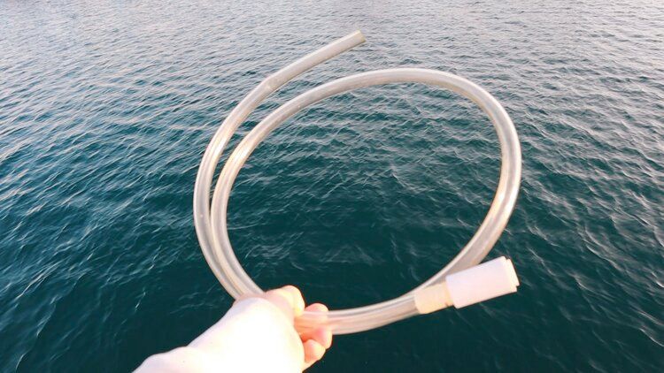 Another practical gem in our toolkit. We tend to buy our fuel in jerry cans and fill up when on anchor. It’s pretty inconvenient if not foolish to use the nozzle of a 20 liter / 5 gallon jerry can to fill up when bobbing around. Instead we use the 21st century version of liquid transferring technology, the Taka Taka. Or at least that is what they called this nifty little hose in Greece. Probably because of the sound it makes when you use it. The official name I found is: Jiggle syphon manual pump.