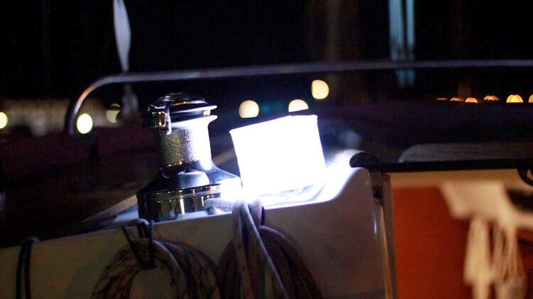 We like those because they float, charge on solar, and are versatile. We use them when riding the dinghy at night; They aren’t meant as torches but as a round light to be seen by others. The lights also look nice in the cockpit.