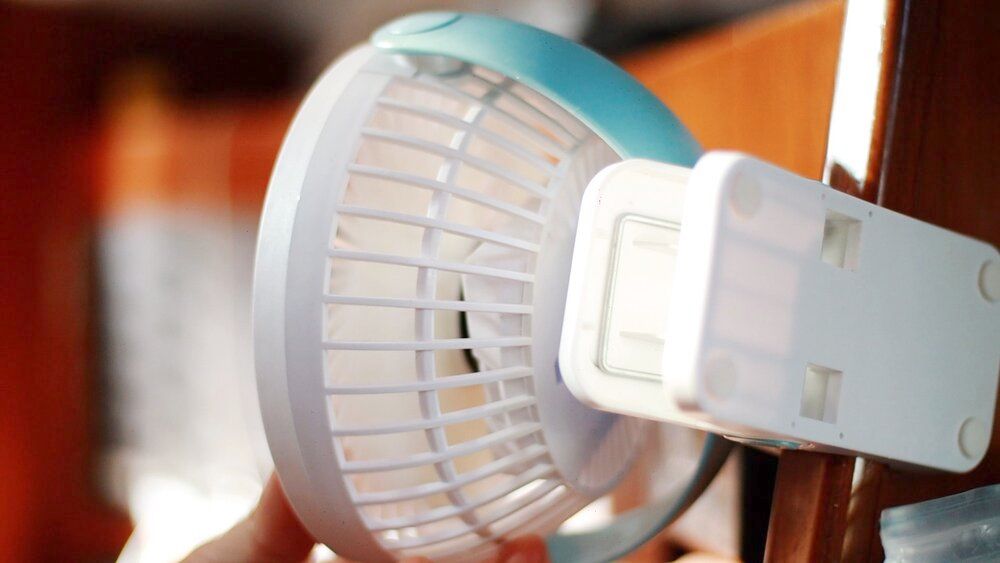 We prefer these over the fixed ones that have to be screwed on some wall in the boat and need a 12V power supply. They are also half price of marine store models. Make sure to get one with a good clip. You may consider this one.